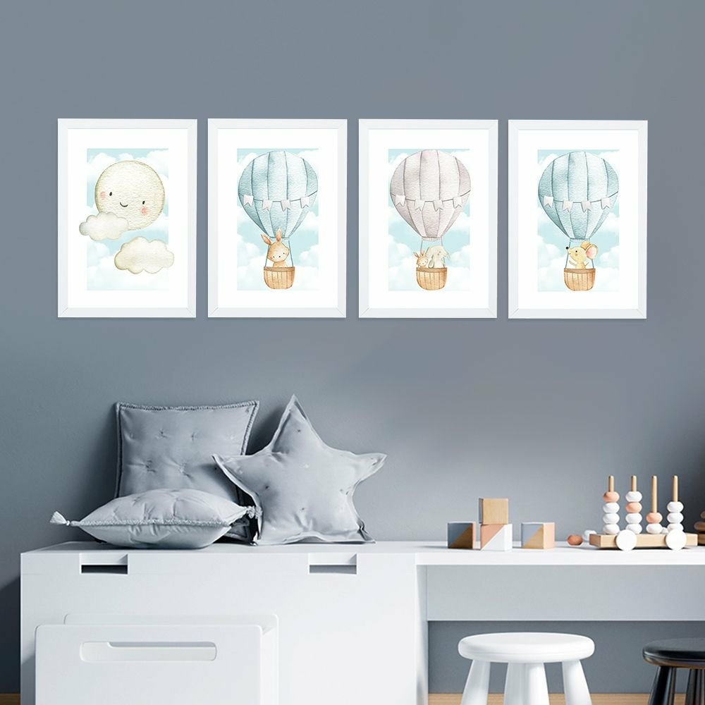 Kit de Placas Decorativas Lua e Balões Cute Azul