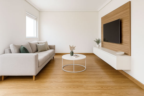 Os pisos vinílicos são indicados para uso residencial de tráfego médio. Possui conforto térmico e acústico. É composto por PVC, um material plástico que garante maior durabilidade e é resistente à água. Para melhorar ainda mais, ele também não mancha, não retém cheiro e não estufa.