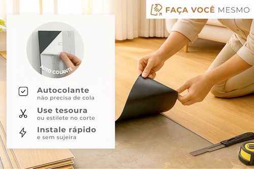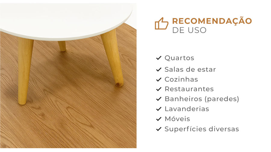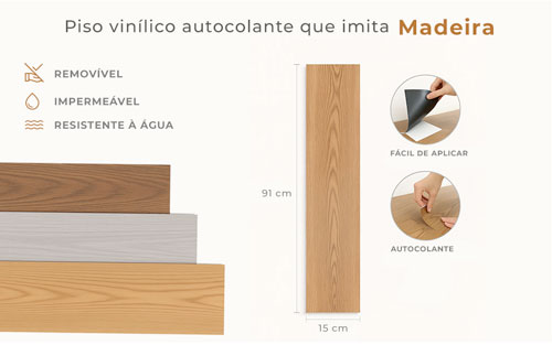 - VantagensAutocolante, basta retirar o papel e colar sobre a superfície plana e lisa, sem quebradeira nenhuma. Possui desenhos que se completam com características e tonalidades de madeira, oferecendo além de modernidade um toque aconchegante aos ambientes.